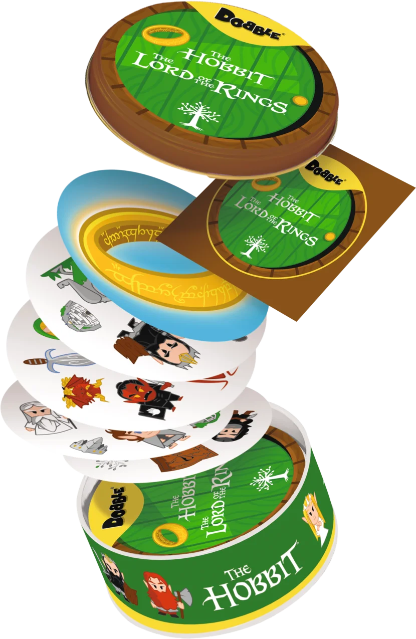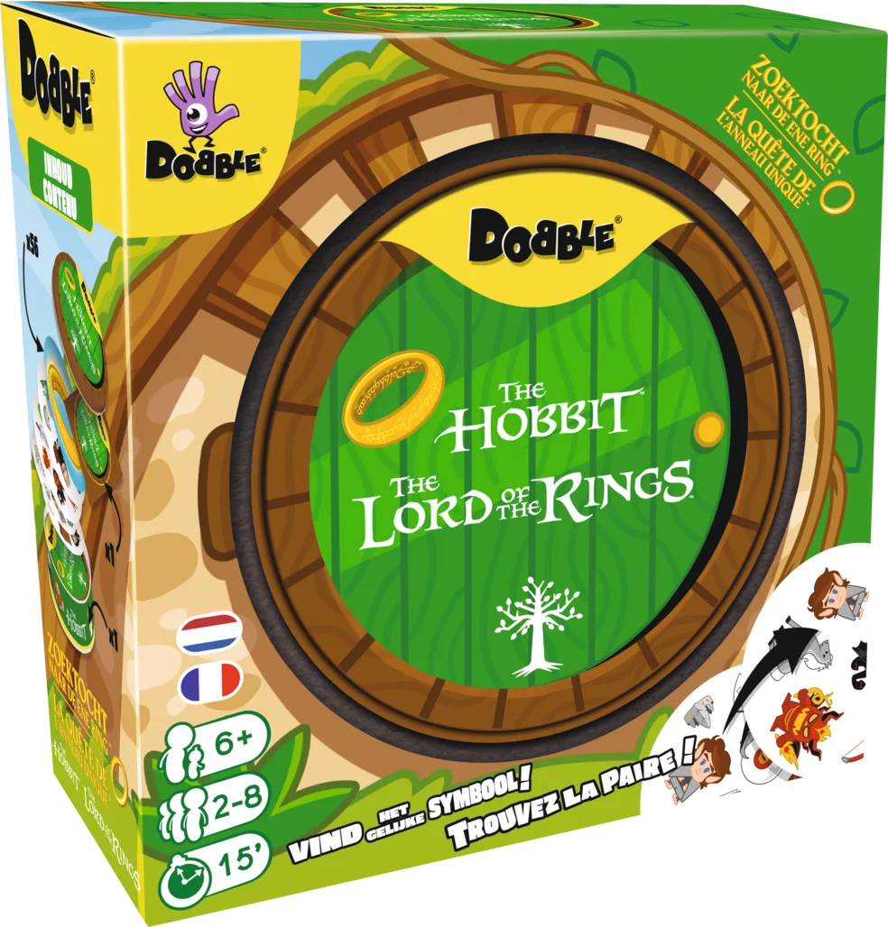 Vind de iconische karakters en voorwerpen uit de legendarische boeken en films van The Lord of the Rings. Dobble test jouw snelheid én observatievermogen uit. Het doel is eenvoudig: vind als eerste een identiek symbool!