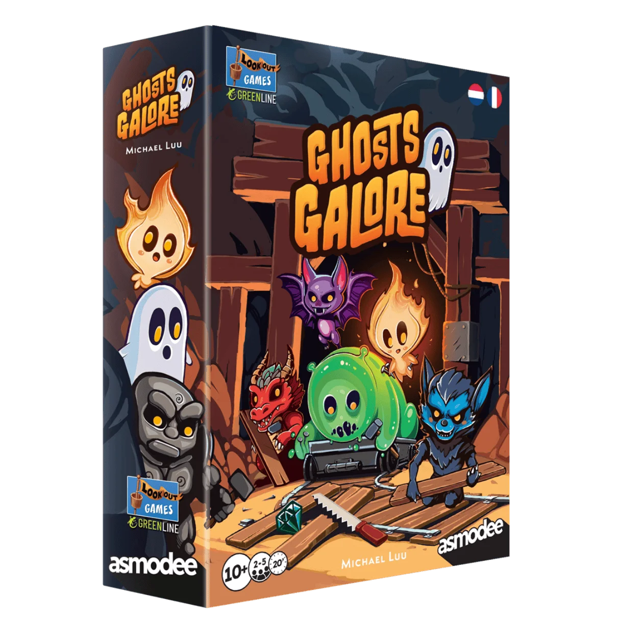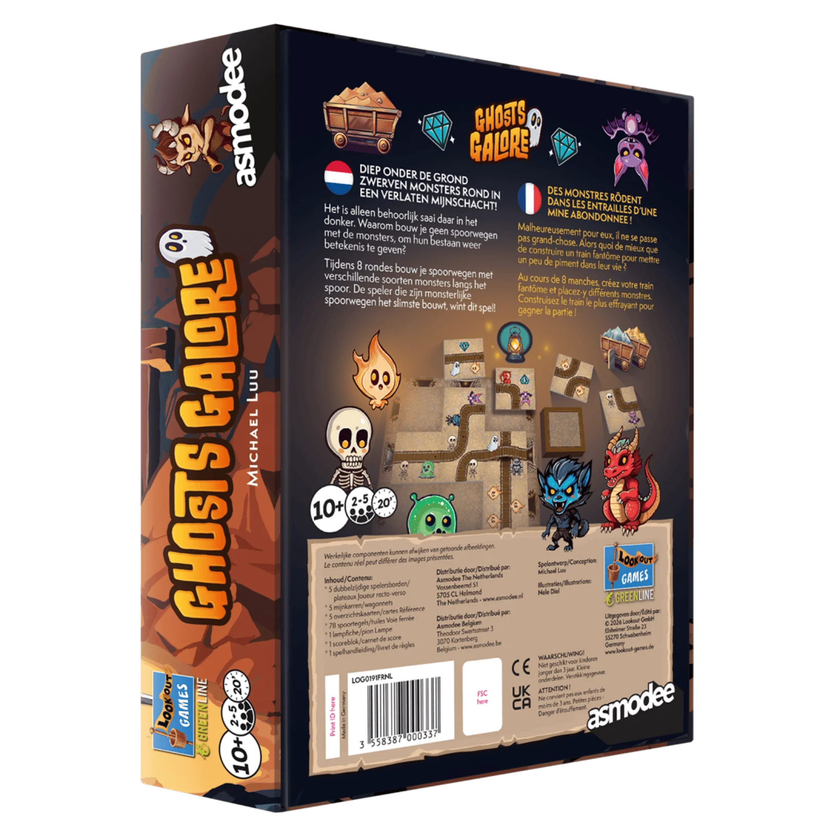 In Ghosts Galore help je monsters bij het bouwen van een spooktrein in een verlaten mijnschacht. Elk monster wil dat de spoorelementen op zijn manier worden gelegd – dus JIJ moet ze rustig houden, coördineren en hun spoor optimaliseren. In de loop van 8 rondes bouwt elke speler een uniek spoor op zijn 3x3-speelveld voor de spooktrein.