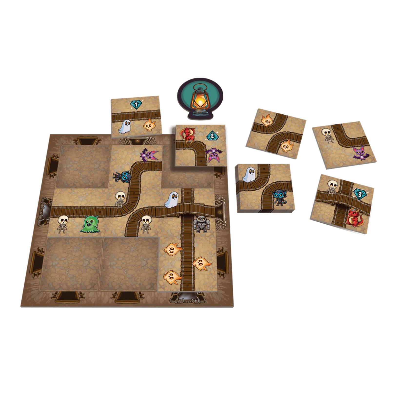 Help monsters een spooktrein bouwen in Ghosts Galore! Neem tegels, leg je spoor slim in 8 rondes en scoor de beste schrikmomenten in dit vlot, strategisch familiespel.