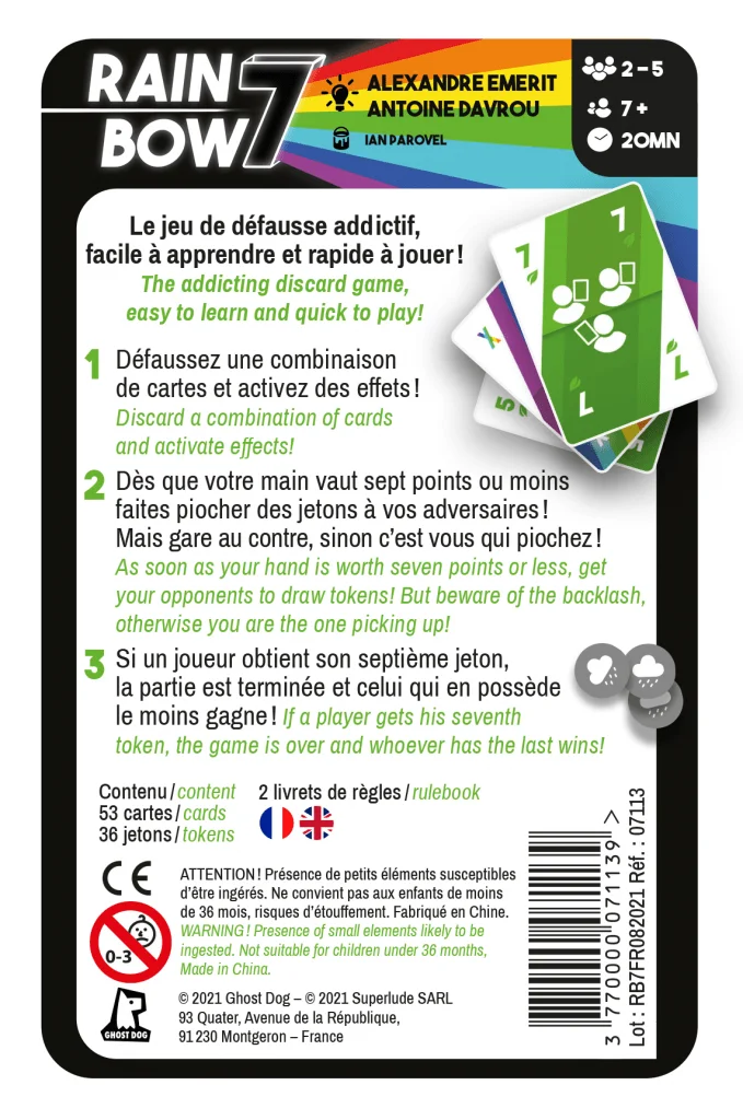 Rainbow 7 is een leuk, snel, sluw en kleurrijk kaartspel waardoor de tijd vliegt.