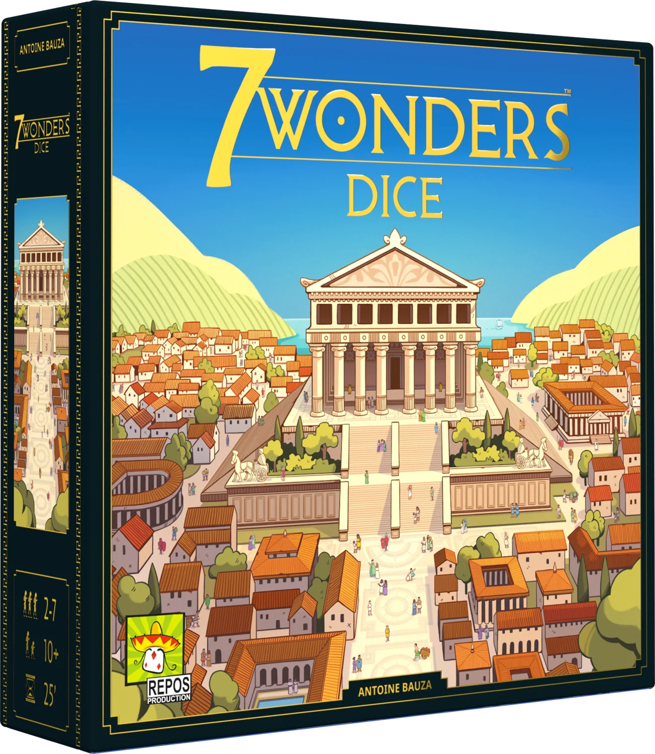 Dans 7 Wonders Dice, chaque joueur fait prospérer sa cité antique en lançant des dés et en construisant bâtiments et Merveille.