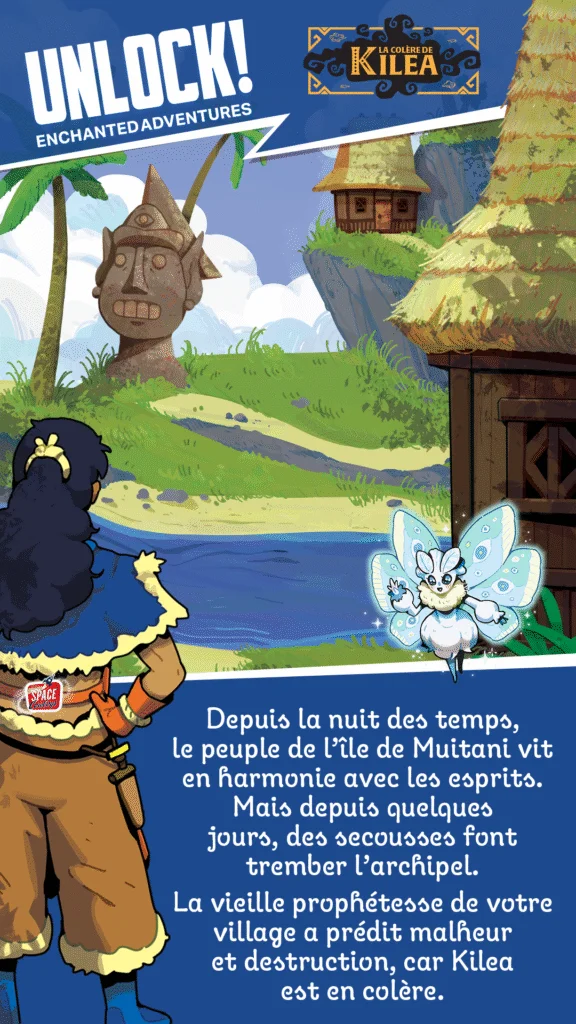 - La Colère de Kiléa (niveau 1) : l'archipel de Buitani est menacé ! Les esprits, vénérés depuis des siècles, ne suffisent plus à contenir la colère du dieu du feu Kiléa. Trouvez un moyen de l'apaiser avant que l'île ne soit détruite.